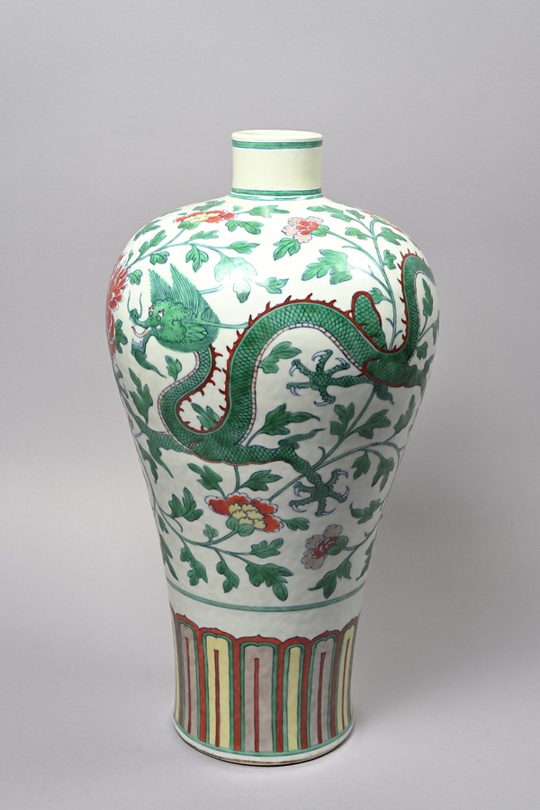 黄地緑彩龍文瓶