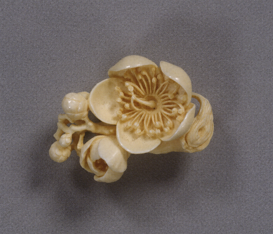 梅枝牙彫根付