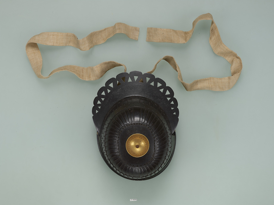 古墳時代を代表する帯金式甲冑の新段階に出現した大陸の甲冑のデザインを取り入れた冑である。原品と比較して金属部分が忠実に製作され、布等の有機質部分は遺された痕跡から復原されている。昭和7年頃は、他にも積極的に復原を試みた模造品が多く製作された時期である。
