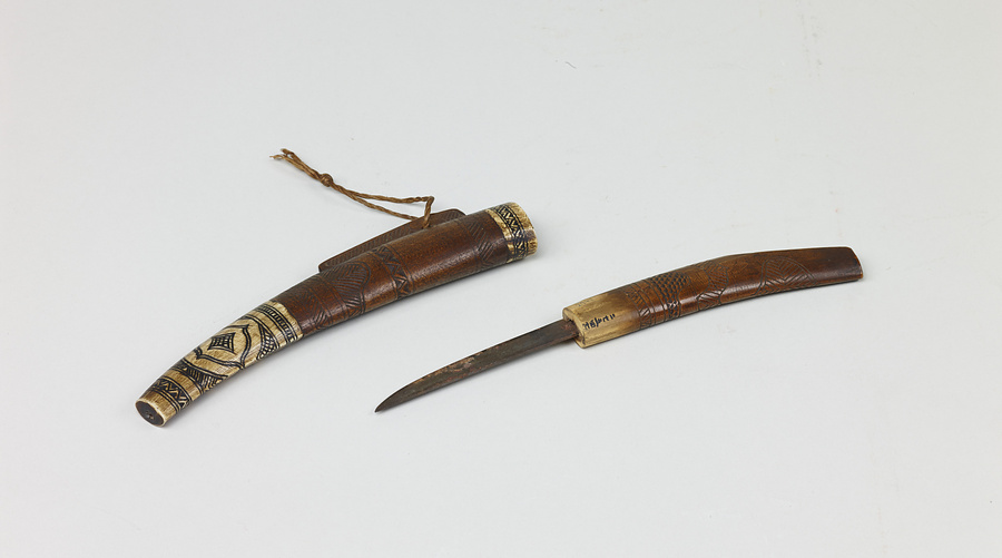 アイヌの人びとが日常携行している利器でさまざまな用途をもつ。山猟の際にも欠くことができない道具である。拵(こしら)えに美しい彫刻があり、とくに鯉口(こいくち)(基部)・鐺(こじり)(先端部)には鹿角を装着し彫刻を施している。