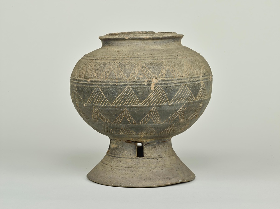 有蓋脚付短頸壺
