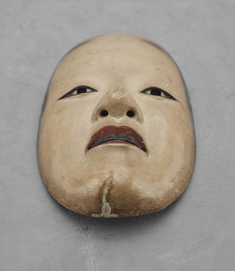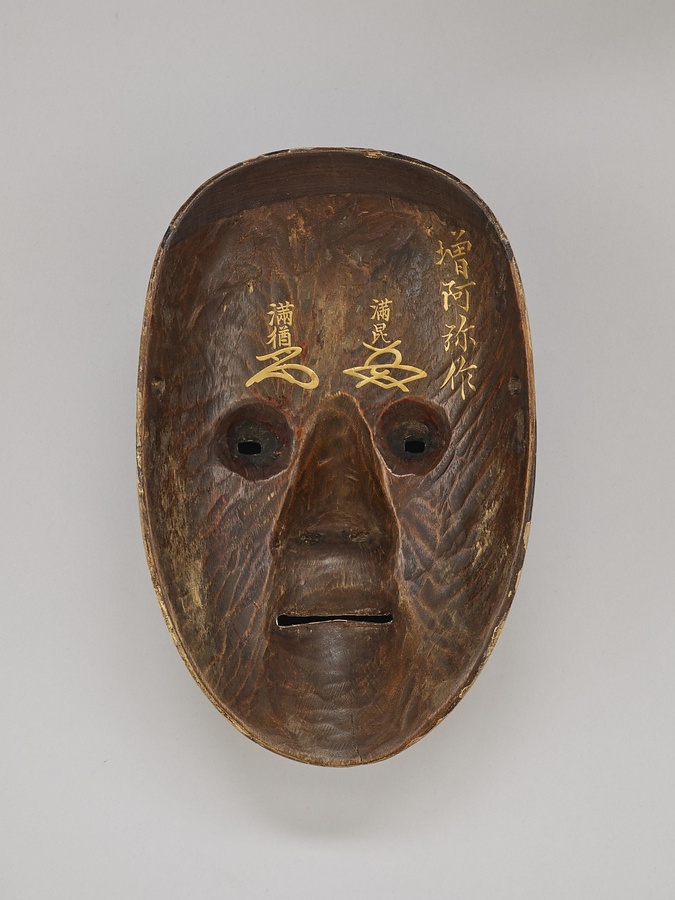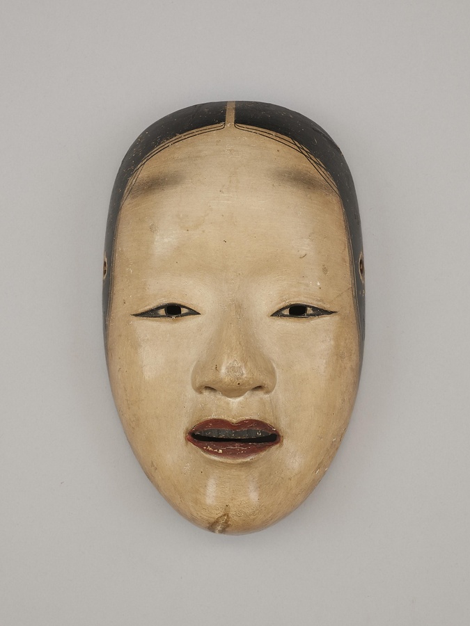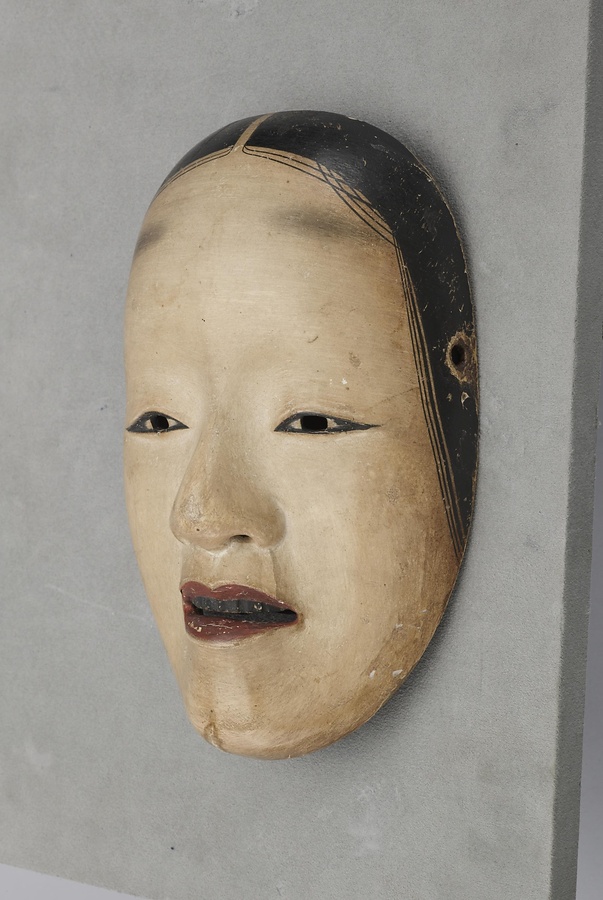 室町時代の田楽(でんがく)の役者・増阿弥(ぞうあみ)が創作したという若い女性の面。知的で高貴な表情から女神、天女などの役に用います。この面の材は広葉樹(クスノキか)で重く、面打である大野出目(おおのでめ)家4代・満昆(みつのり)(洞水(とうすい))と5代・満猶(みつなお)(甫閑(ほかん))がこの面を増阿弥の作と鑑定した銘があります。