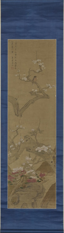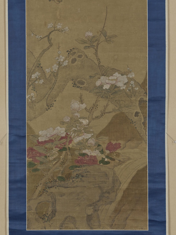 紅蓮綺石・野梅山茶図軸