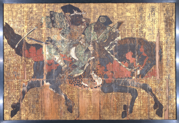 長谷川等伯最晩年の大作。画題は、源義経の命を狙った土佐坊昌俊のもとに武蔵坊弁慶が討ち入ったあげく、昌俊を堀川の屋敷へ引っ立てて行く場面である。