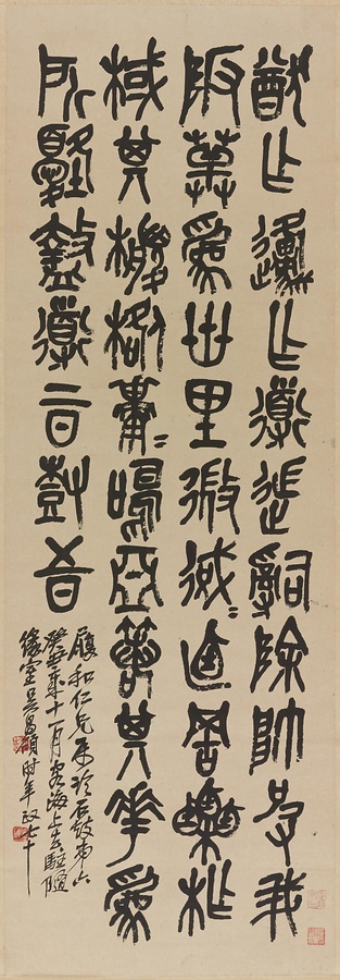 銘文:履和仁兄屬臨石鼓第六癸丑歳十一月客海上去駐随縁室、呉昌碩時年政七十 ; 鈐印「俊卿之印」 ; 倉碩 ; 鑑蔵印「定静堂印」 ; 曾經韓石安藏