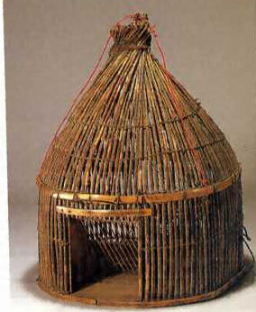 最上川を始め大小の河川には、おおくの魚種が棲息していますが、特に海水の入り交じる河口や下流には、のぼりくだりする魚が多く、これに対応するさまざまの漁法がおこなわれてきました。毎年秋になるときまって大量に海からのぼってくるサケの漁法にも伝統的なものが多く、サケに関する禁忌や信仰も、各地に伝えられています。
