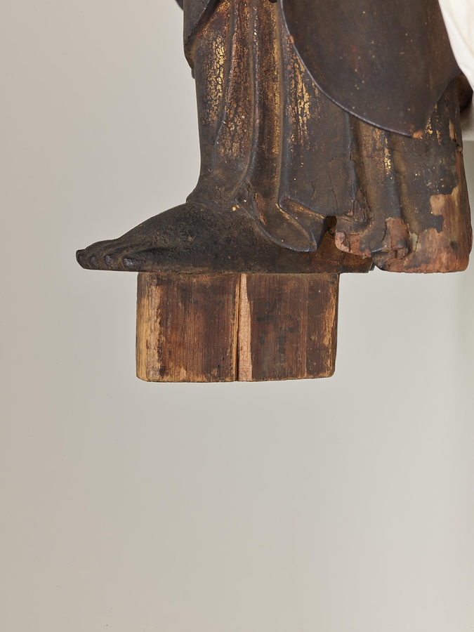 すっきりとした顔立ちや整った衣の線など、総じて優美で穏やかな作風は、鎌倉時代の仏師・運慶@うんけい@と並び称される快慶@かいけい@が創り出した作風です。快慶の法名@ほうみょう@(安阿弥陀仏@あんなみだぶつ@)にちなんで安阿弥様@あんなみよう@と呼ばれます。後世、本像のような安阿弥様の特色を受け継ぐ仏像が数多く作られました。