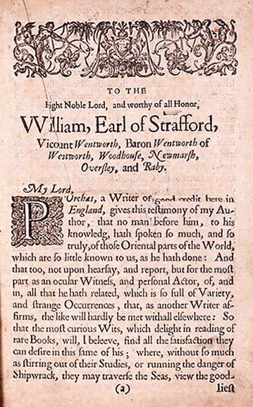 ポルトガル人メーデス・ピントがアフリカ・インド・東南アジア・日本を約20年遍歴し、帰国後著した旅行記。日本に4度訪れており、5分の1を日本関係の記述に充てている。自分を種子島に鉄砲を伝えた一人とし、大友義鎮(宗麟)の招きで府内を訪問し、弟に鉄砲の撃ち方を教えたというエピソードが記されている。多分に脚色された点も多いが、他の文献にはない貴重な証言が含まれている。本資料は1653年にロンドンで出版された英語版。