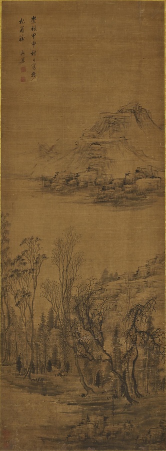 陸広明は、明@みん@代に著名な書画家を輩出した蘇州@そしゅう@(江蘇省)の陸家の一員。本作の一水両岸@いっすいりょうがん@構図は倪瓚に由来しますが、手前の木々のバリエーションはより豊かです。やや粗放な折帯皴@せったいしゅん@の処理にも独自の工夫が見られます。