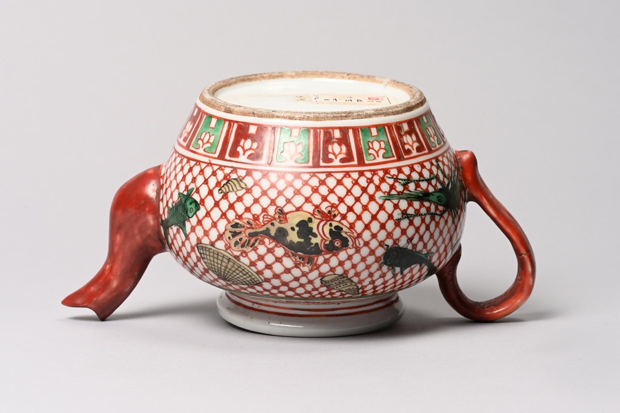 五彩網目魚介文水注