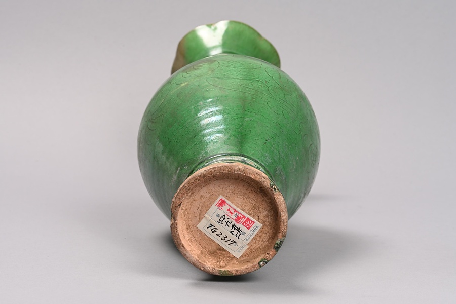 緑釉牡丹文鳳首瓶