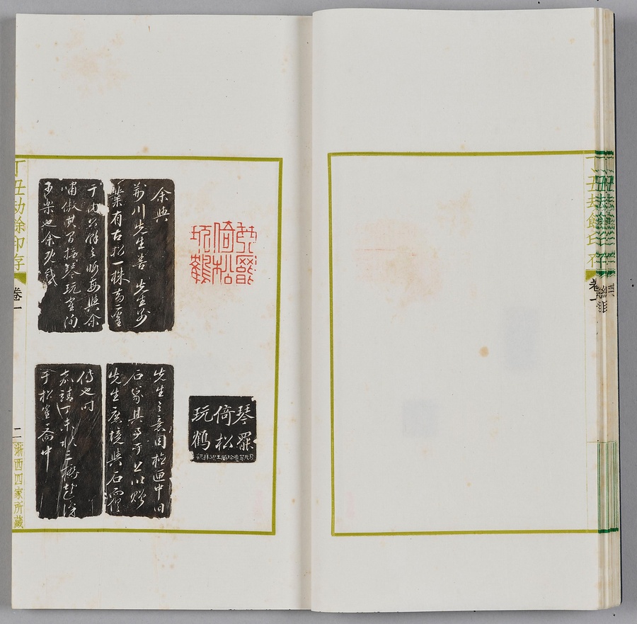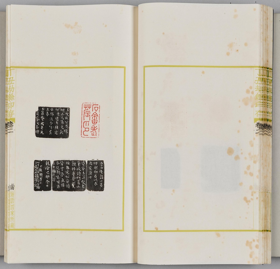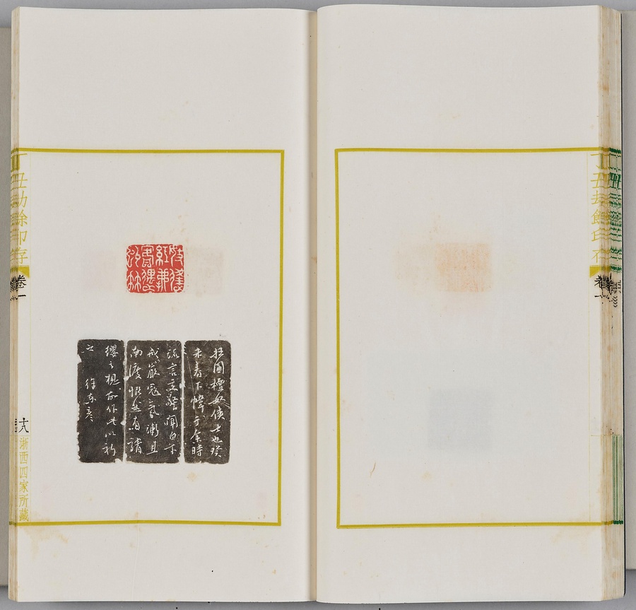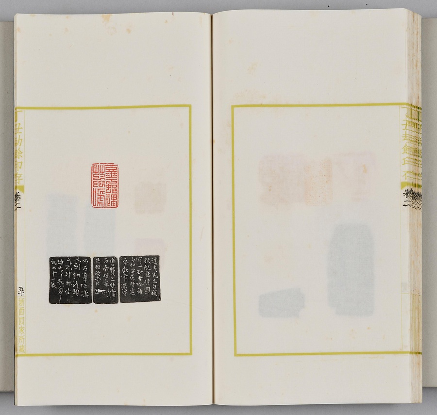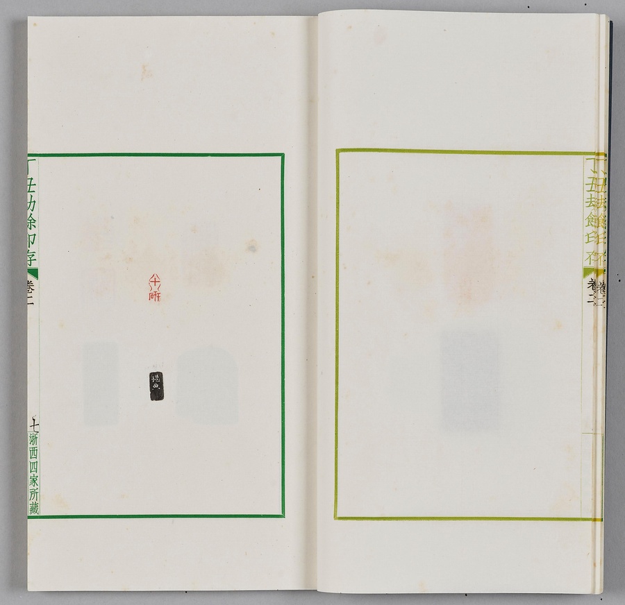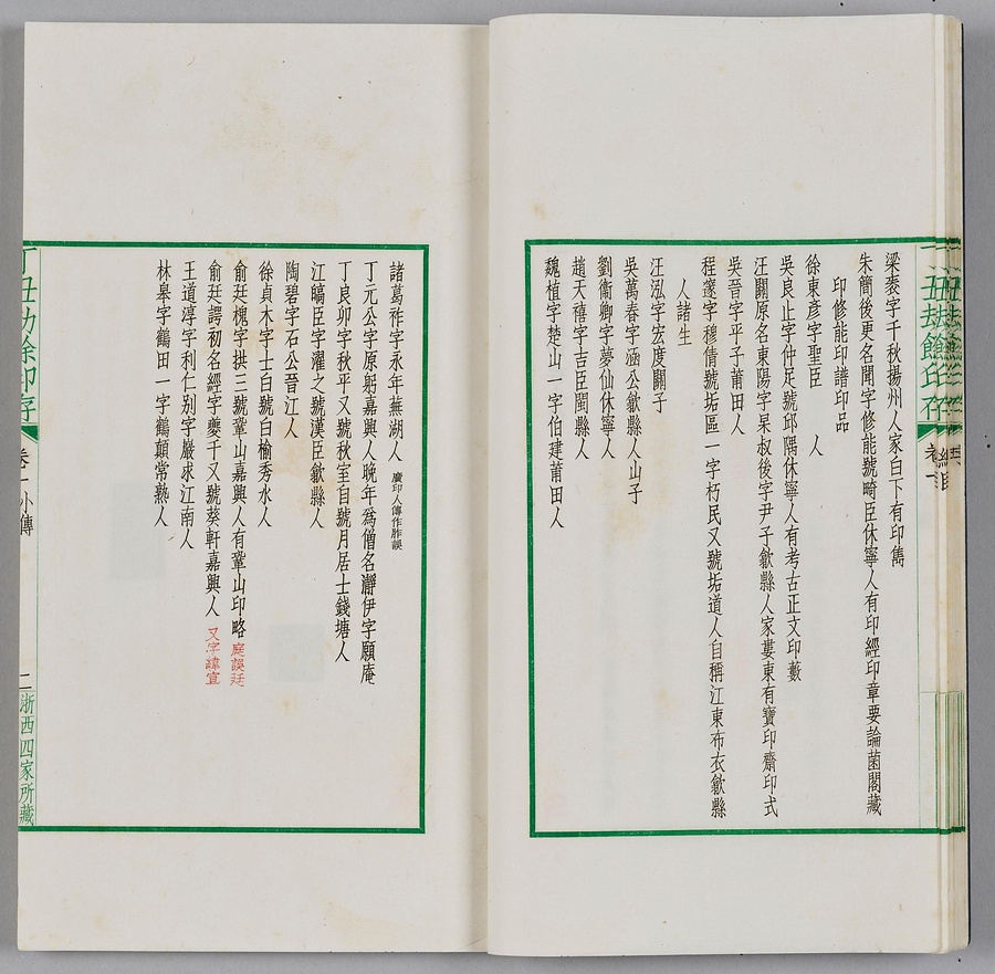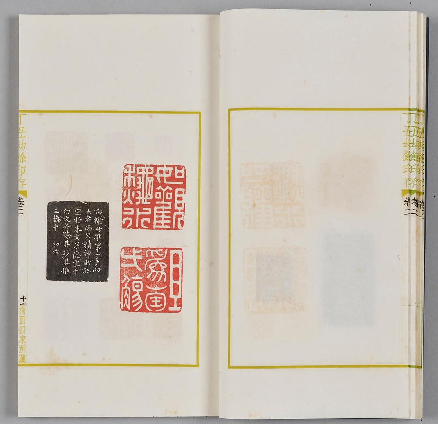 第二次上海事変の年にあたる民国26年(1937)丁丑の年に、丁輔之・兪人華・葛昌楹・高時敷の4人が、明・清時代の名人の刻印を捜集して編集したもの。文徴明以下、270余人の刻印1900余りを収め、わずか21部が作成された。完成度の高さは、他の類を見ない。