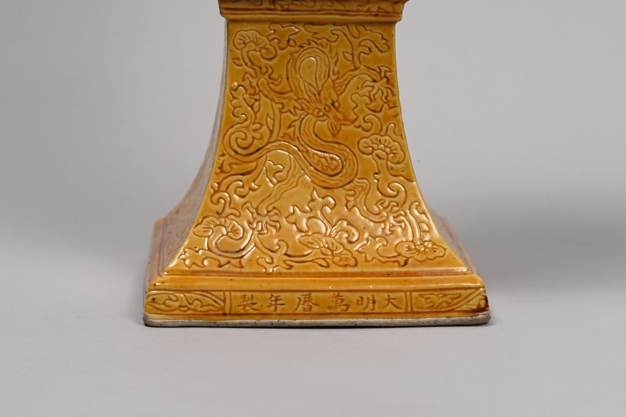 黄釉龍濤文方瓶