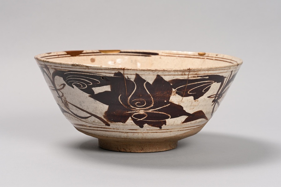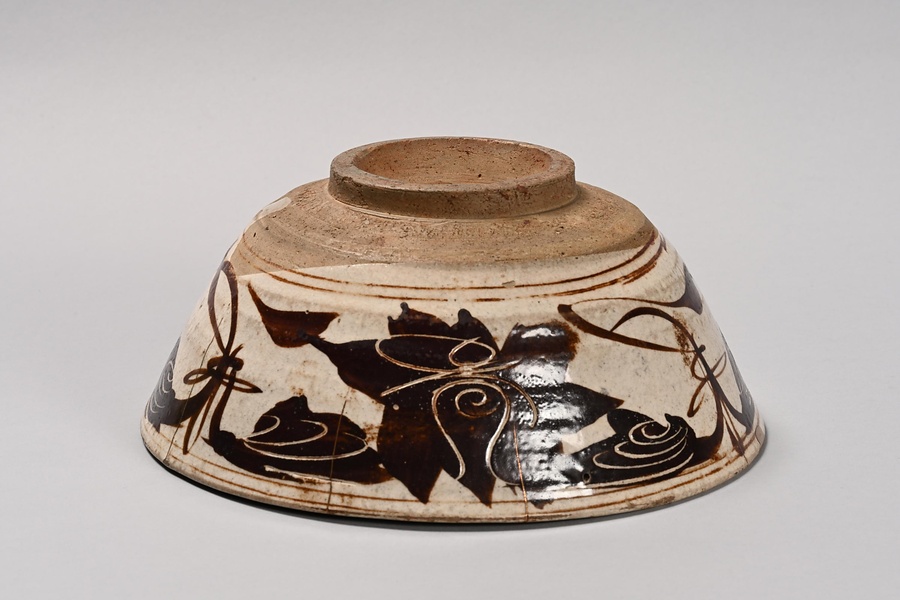 白釉黒地白花牡丹文碗