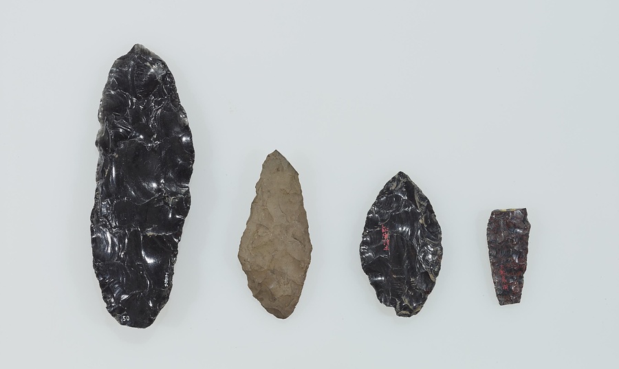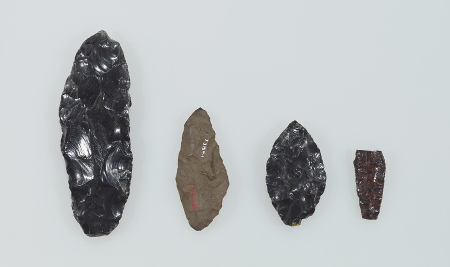 尖頭器4個(6.4-18.8)、両面調整石器1個(19.9)