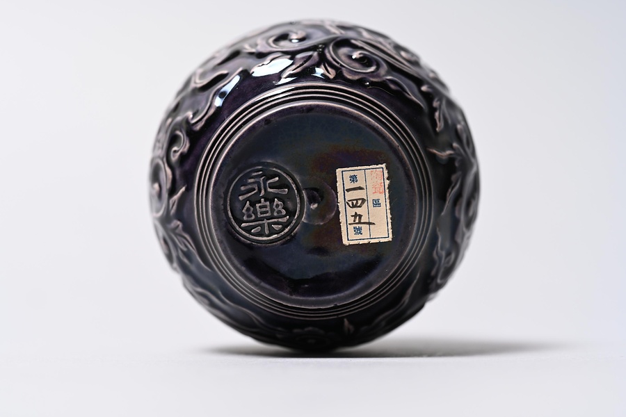 紫釉牡丹唐草文振出 「永楽」印