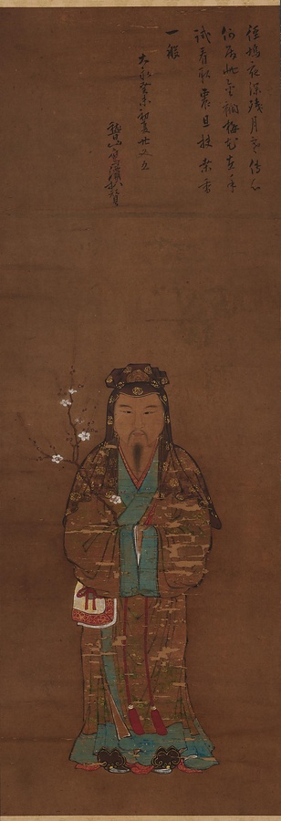 銘文:「径塢夜深残月寒伝心/何居此金襴梅花左手/試看取震旦扶桑香一般/大永癸未初夏廿又五/稽山鷹㶚拝賛」 ; 「霸水」 ; 「祥琳」