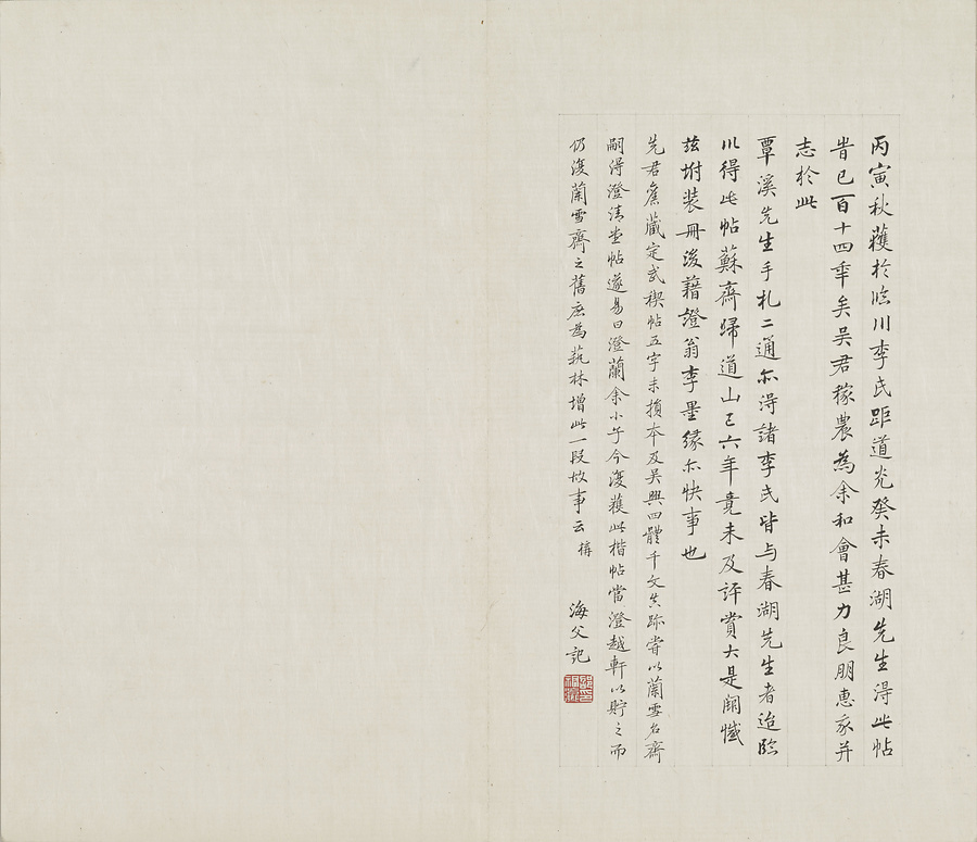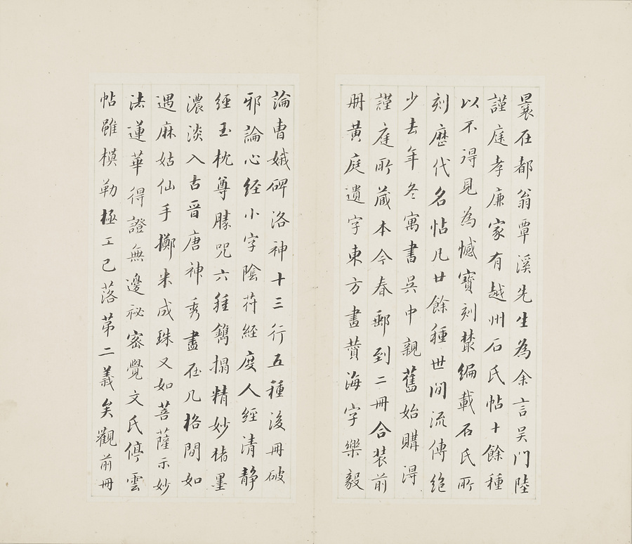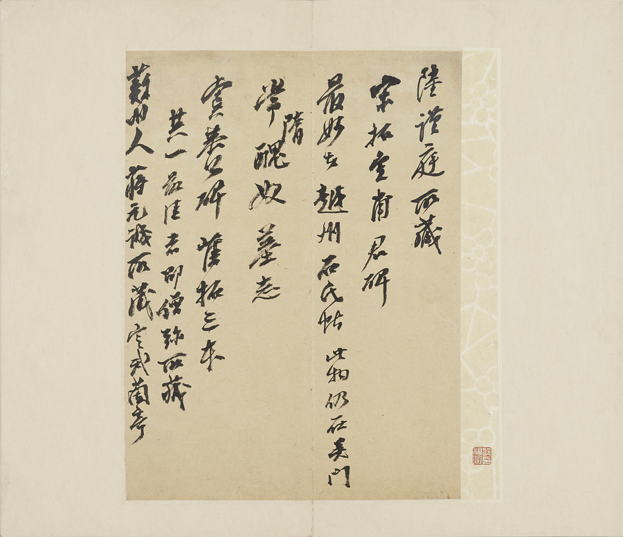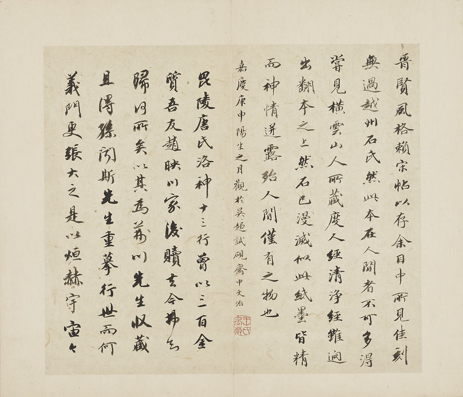 この「晋唐小楷冊」は、版の彫りも拓本の摺りも実に精妙で、名品として古来高い評価を受けてきた『博古堂帖』の姿が偲(しの)ばれます。名だたるコレクターの手に渡りながら大切に伝えられてきました。