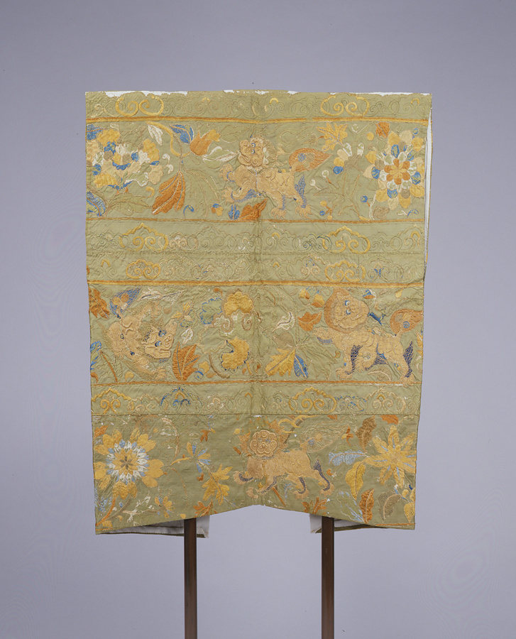 陣羽織 萌黄繻子地獅子模様