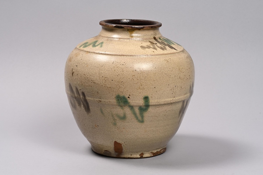 白釉緑褐彩壺