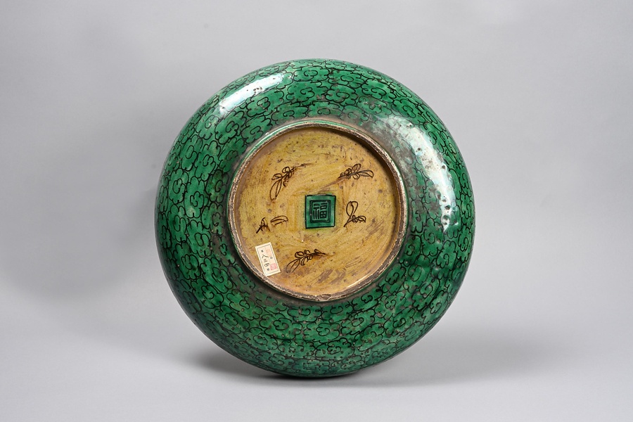 古九谷色絵竹叭々鳥文大皿
