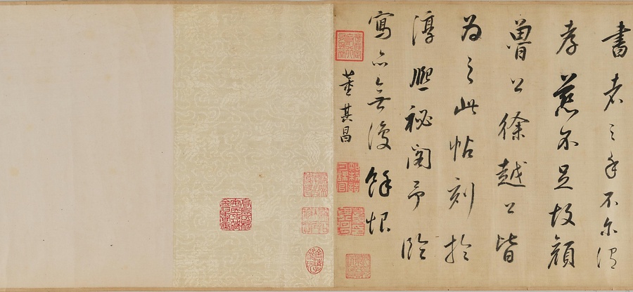 玄宗皇帝の世に宰相をつとめた張九齢(ちょうきゅうれい)に授ける辞令を、徐浩(じょこう)が揮毫しました。この作は孝宗の淳熙12年(1185)に刻された淳熙秘閣続法帖(じゅんきひかくぞくほうじょう)の巻六に収められ、明時代には所在が不明となっていました。董其昌は、上記の法帖から臨書したものと思われます。