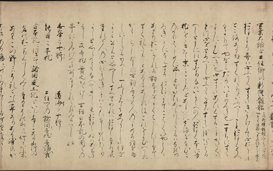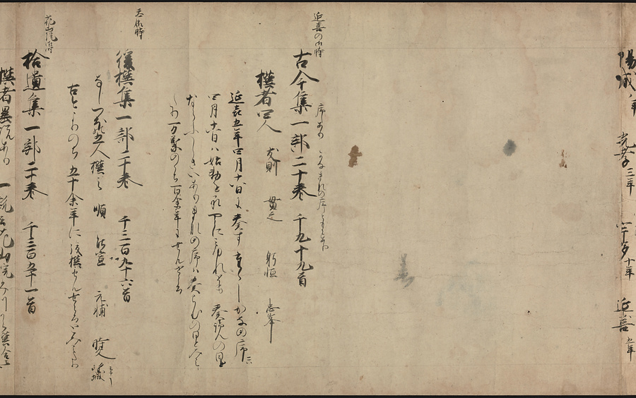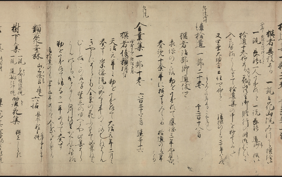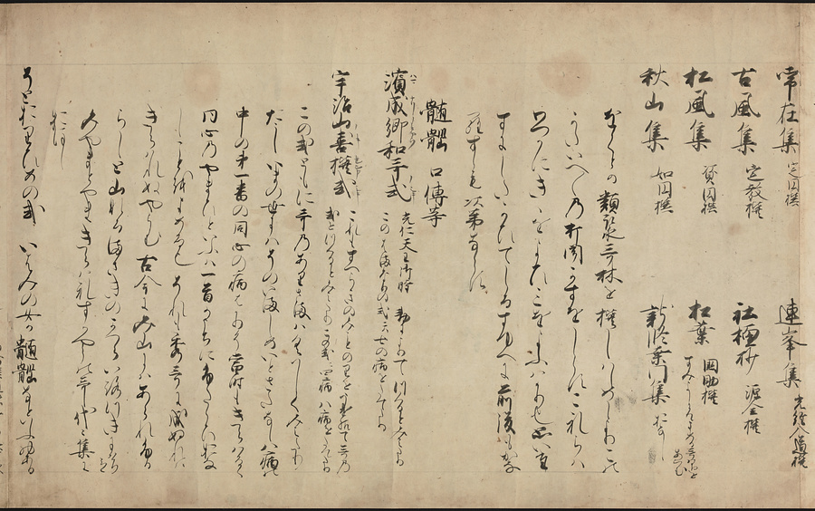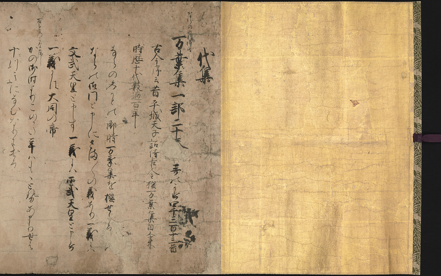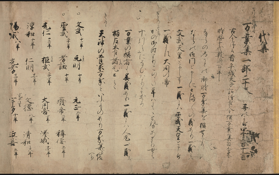 本文の最初に「代集」とあり、『万葉集』に続いて『古今集』から『金葉集』までの勅撰和歌集の解説をして、次に私撰和歌集と撰者名を列挙している。ほぼ鎌倉中期の撰述と考えられ、本作は撰述時期に近い写本。すでに散逸した歌集や作者名を記し貴重である。ルビ:まんようしゅう、こきんしゅう、きんようしゅう、ちょくせん、しせん