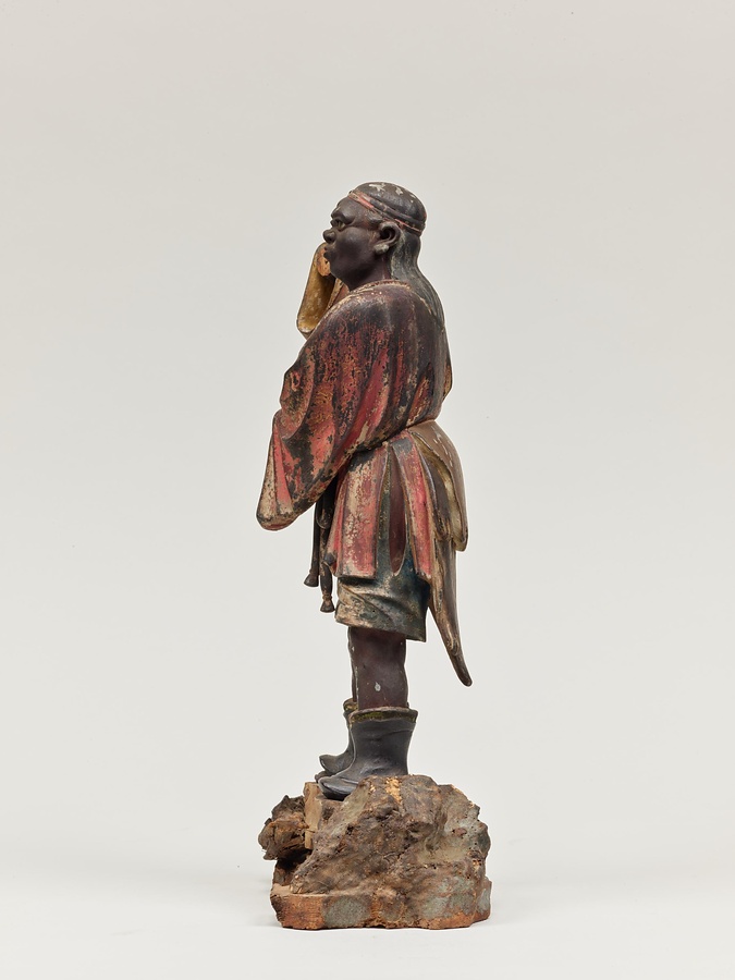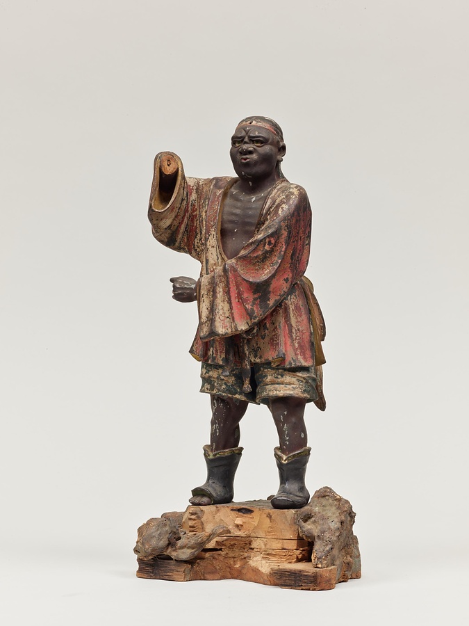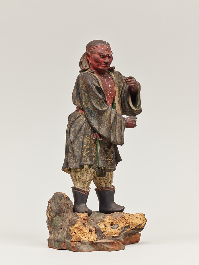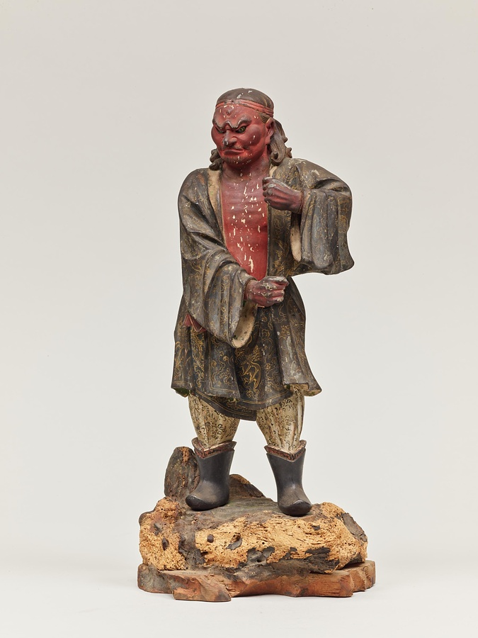 他に類例のない四天王眷属像で、台座裏面の墨書銘から、文永4年(1267)に康円(こうえん)によって造られたことが知られる。もと奈良県天理市にあった内山永久寺(うちやまえいきゅうじ)の真言堂(しんごんどう)に安置されていた可能性が高い。これらと一具の像が靜嘉堂文庫(せいかどうぶんこ)とMOA美術館に分蔵されている。