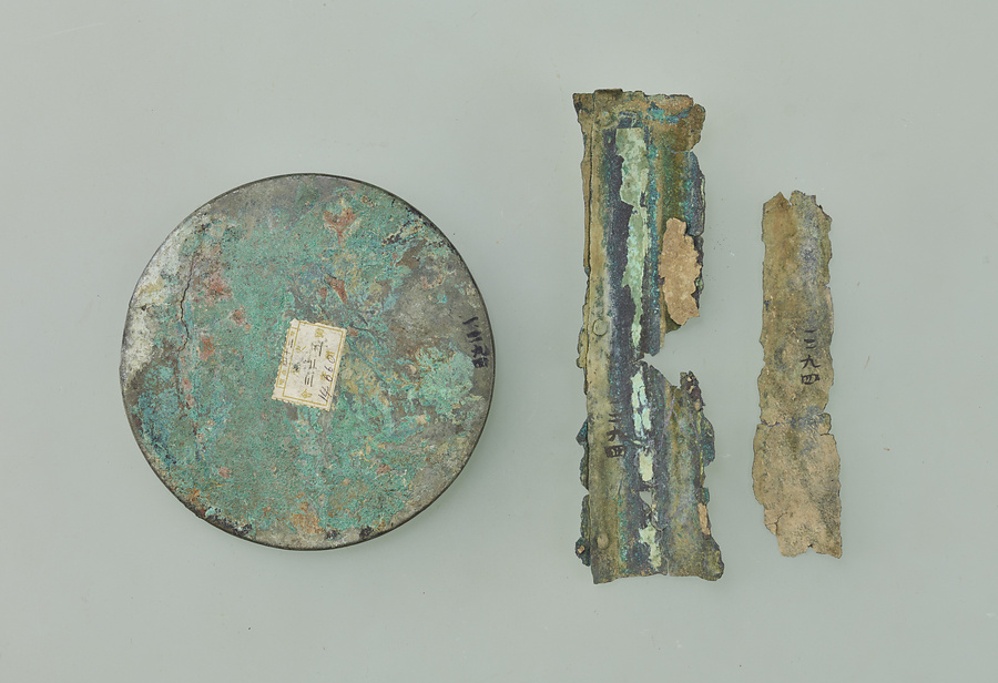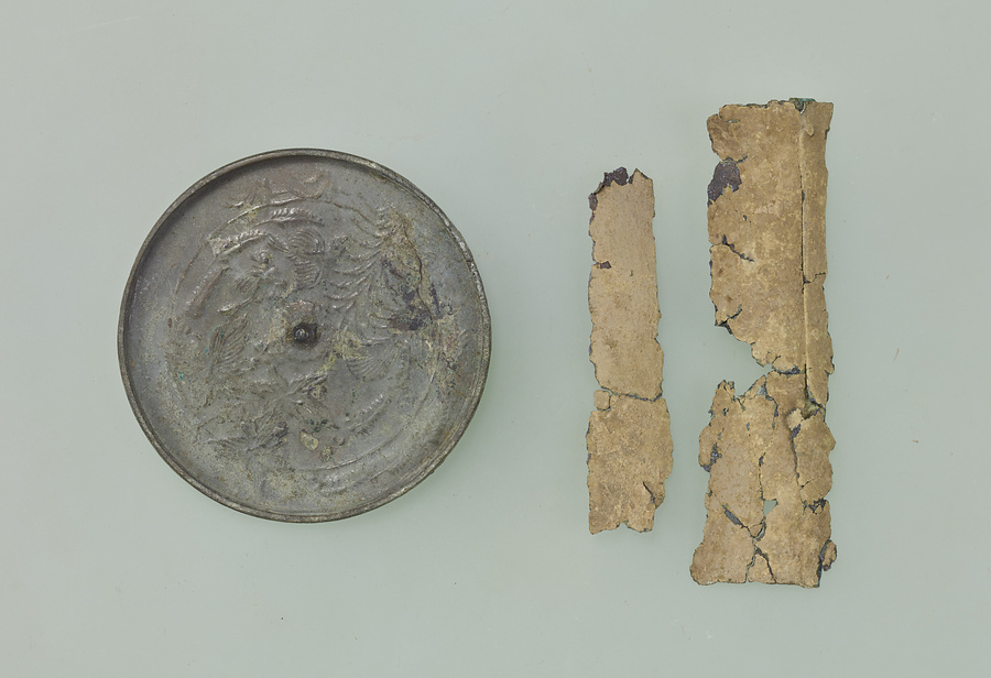 経筒残片、楓秋草双鳥鏡