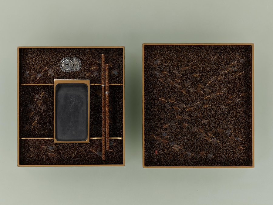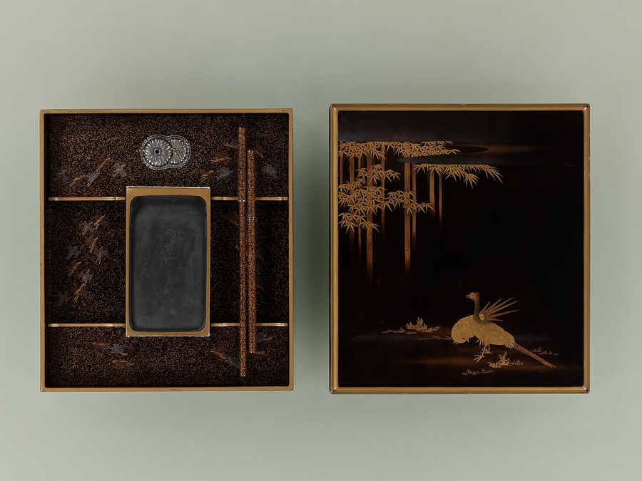 竹雉子蒔絵料紙硯箱