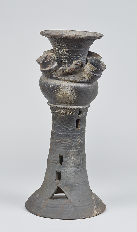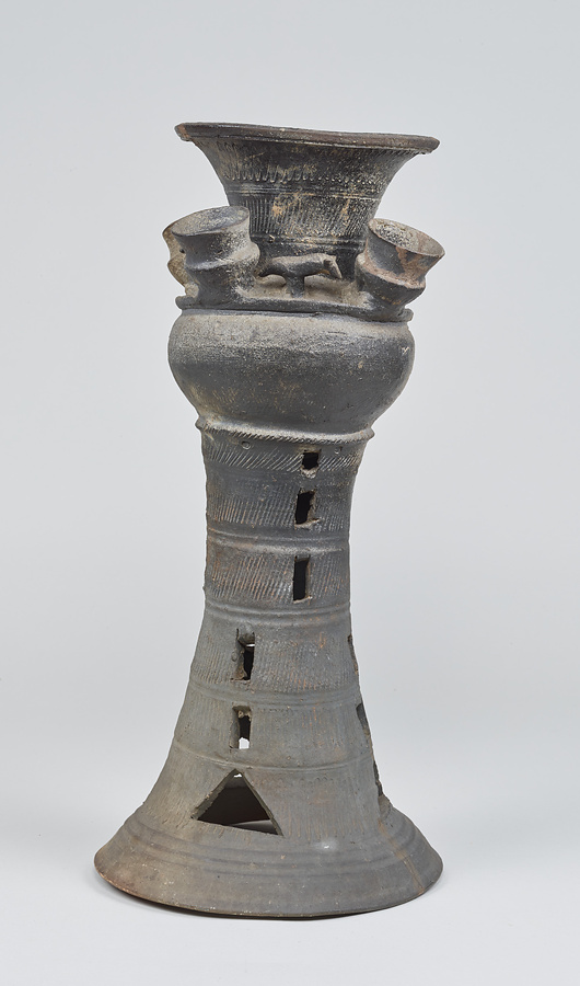 子持装飾付脚付壺