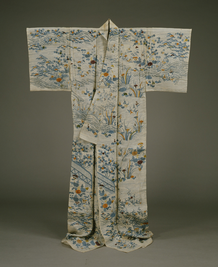 四季折々の草花とともに、さまざまな景物を配した風景模様を藍あるいは藍と玉子色で染めたデザインは、江戸時代後期の武家女性が着用する夏の衣料の特徴で「茶屋辻」と称した。「茶屋」とは、茶屋染と呼ばれる染色技法を創始した呉服商・茶屋四郎次郎にちなむ。