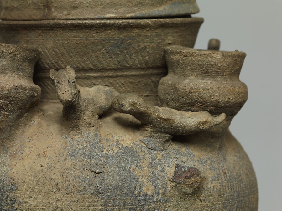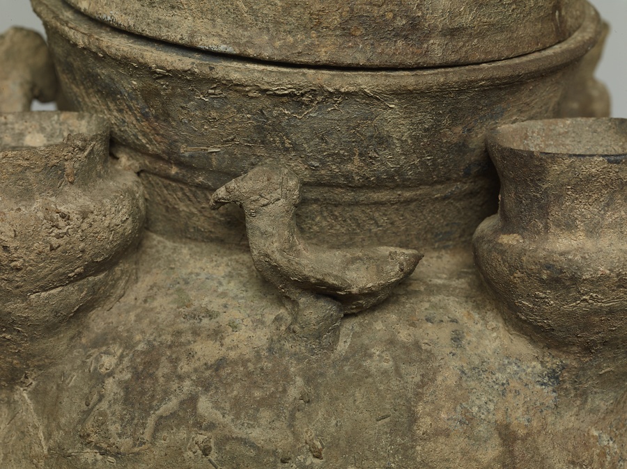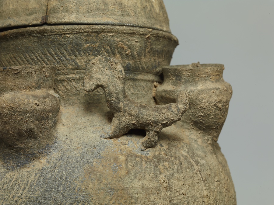子持装飾付脚付壺
