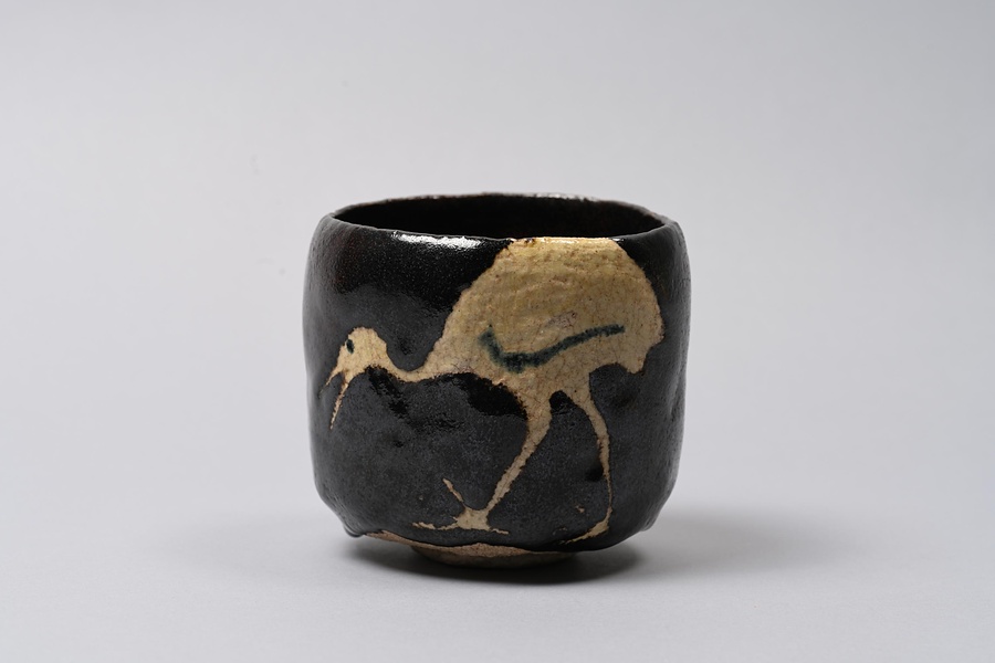 黒楽鶴文茶碗