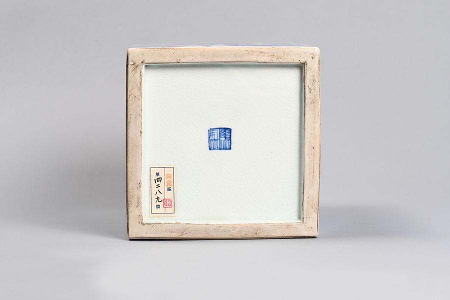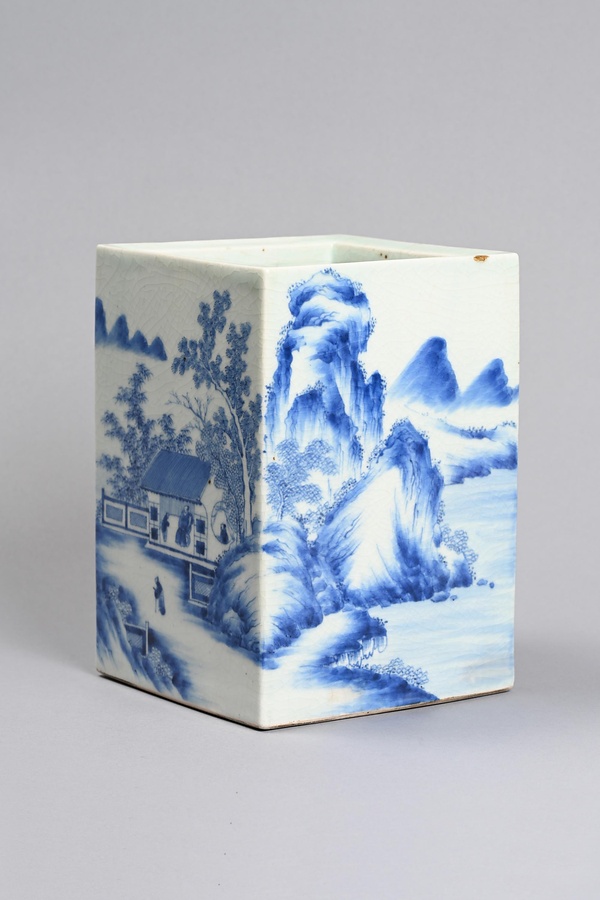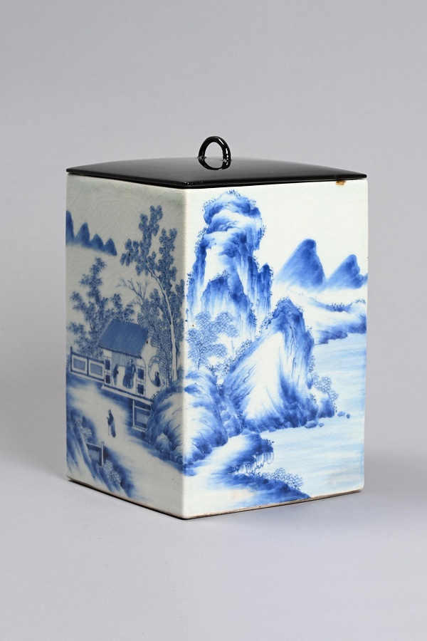 染付山水楼閣人物図角形水指
