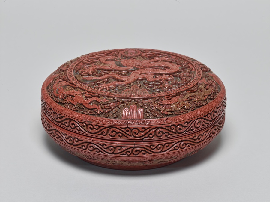 龍彫彩漆合子