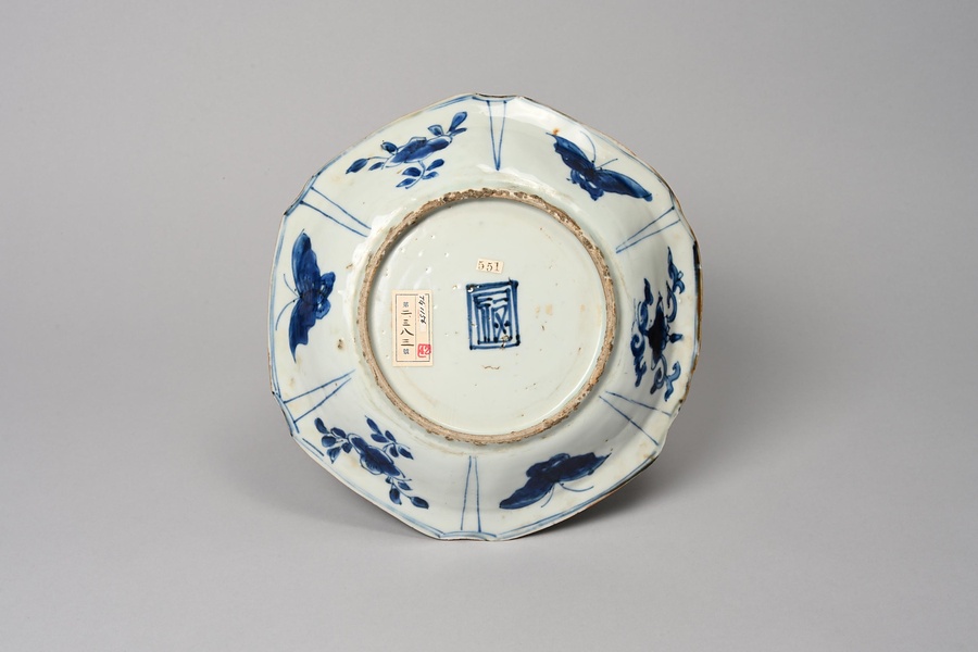 青花祥瑞文六角皿