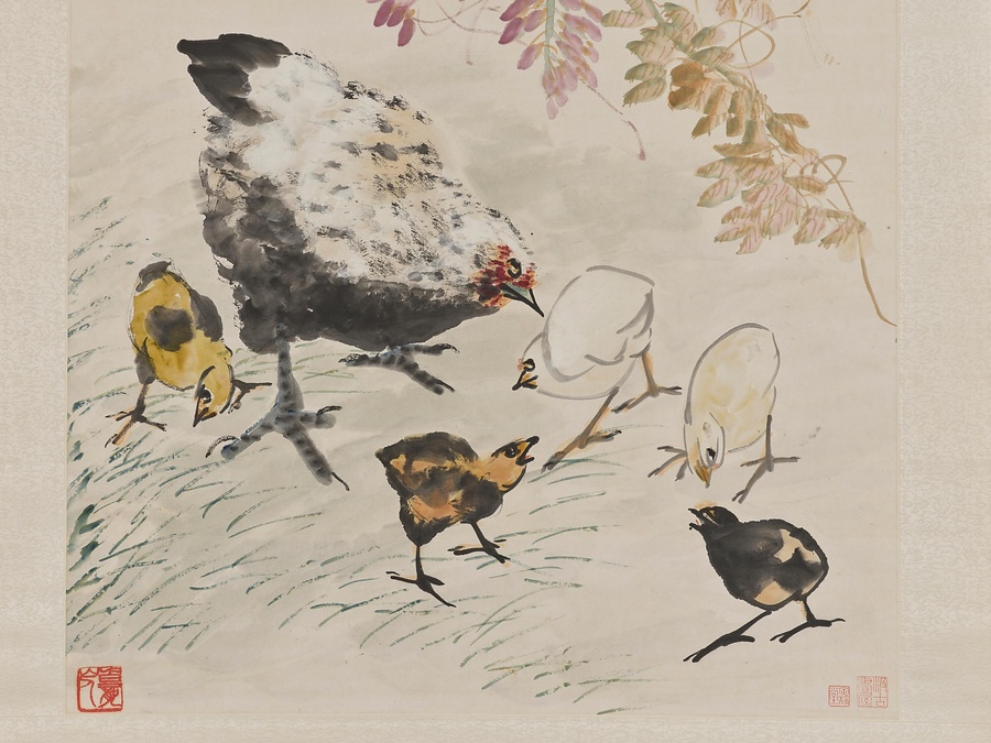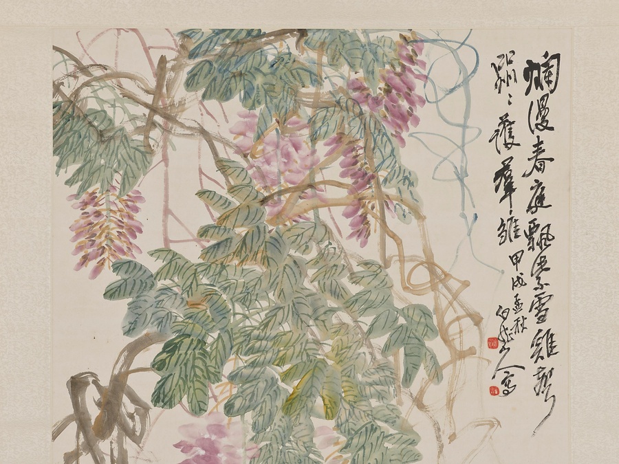 王震(おうしん)は、字の一亭(いってい)で知られ、白龍山人と号す。浙江省呉(ご)興(こう)の人。呉昌碩の影響を受けながら上海で活躍し、その代作もおこなったという。ユーモアがあって親しみやすい画風で知られる。実業家としても活躍した。