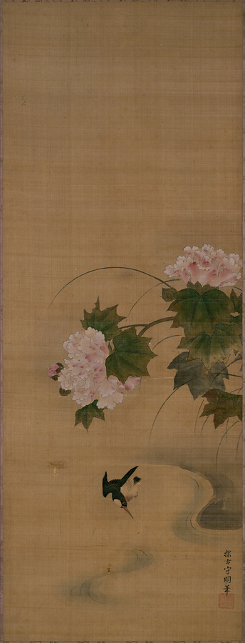 絹本著色紅白芙蓉図