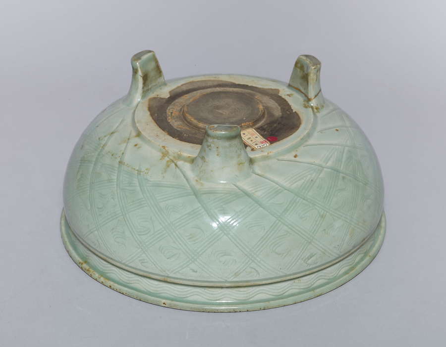 青磁格子文三足香炉