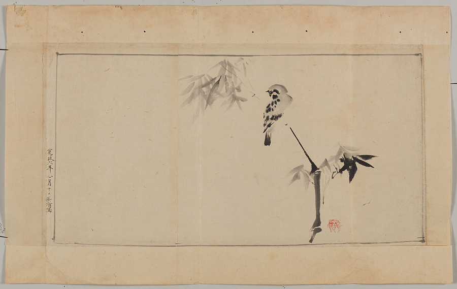 探幽/松ニ鶴竹ニ雛鶴竹ニ雀図