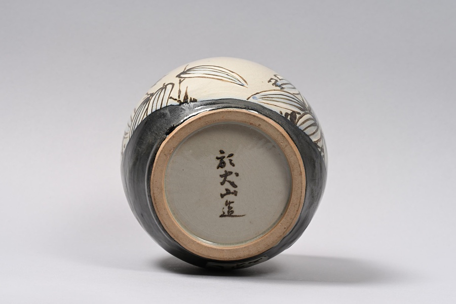 銹絵染付菊花文双耳水指 「帯山」印銘