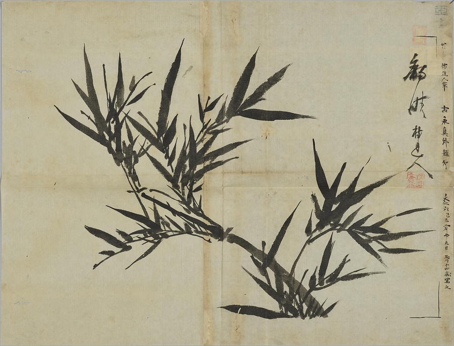 紙本金地墨画竹梅図〈尾形光琳筆/二曲屏風〉