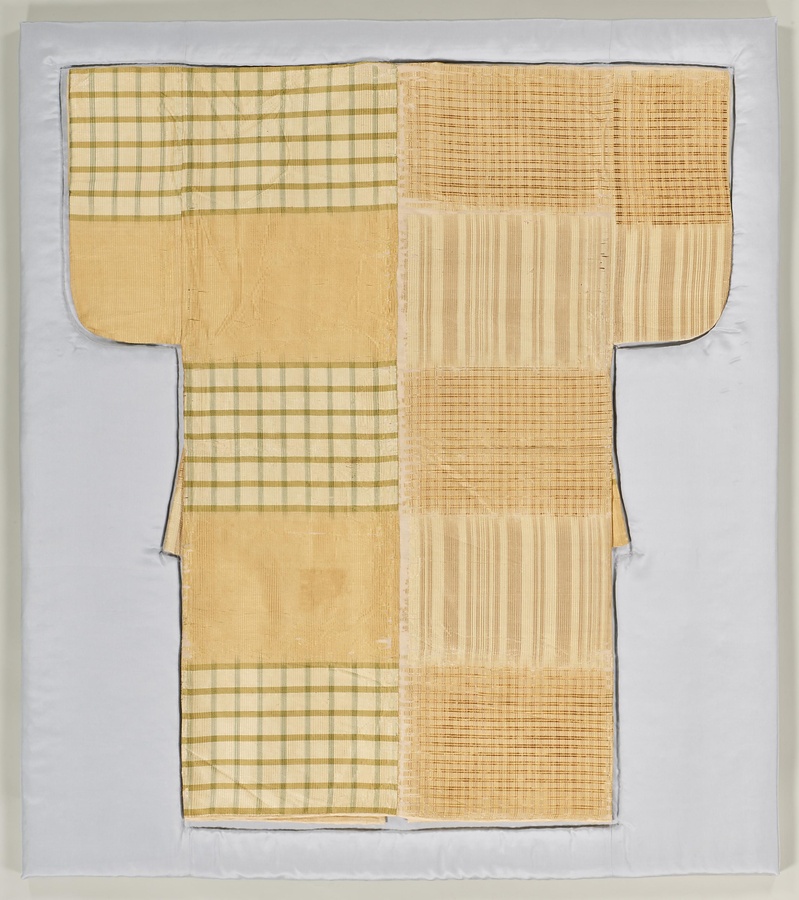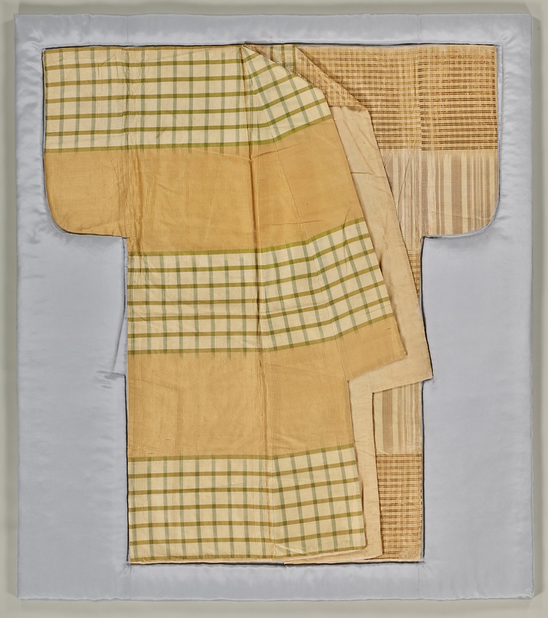 小袖 白地片身替格子縞段縬