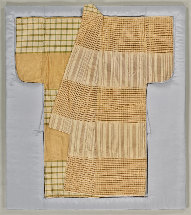 桐唐草格子文様片身替小袖