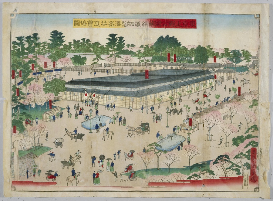 東京上野公園繭糸織物陶漆器共進会場図
