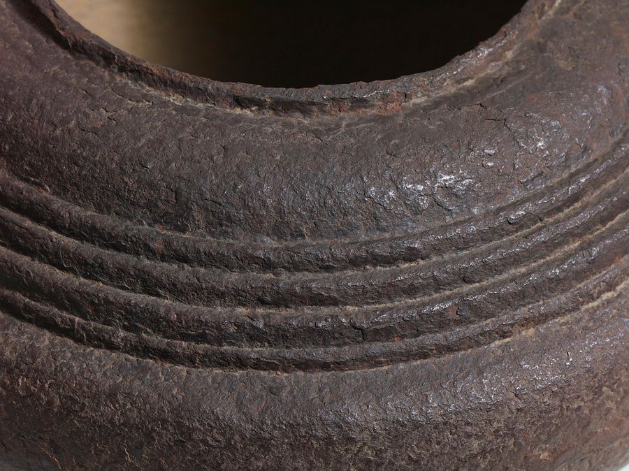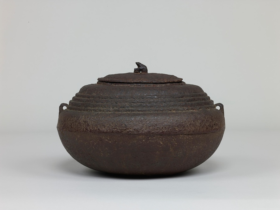 天明【てんみょう】(現栃木県佐野市)は、古くから茶の湯で用いる釜の生産地として名をはせ、芦屋【あしや】(現福岡県芦屋町)とならんで、茶釜の一大ブランドとなった。ややざらついた肌あいや、表面に文様を表さないなど、野趣に富んだ素朴な作風が特色である。(伊藤信二氏執筆)