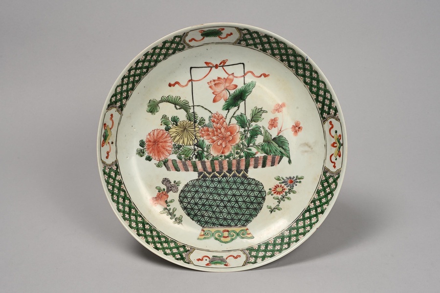 五彩花籠文皿