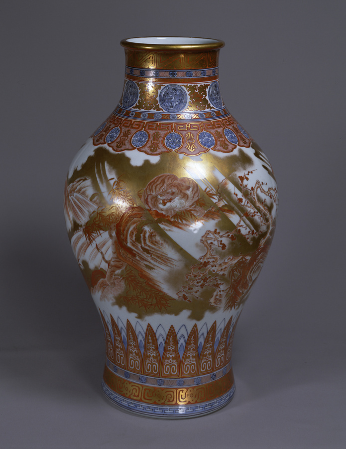 色絵金襴手龍虎図大瓶