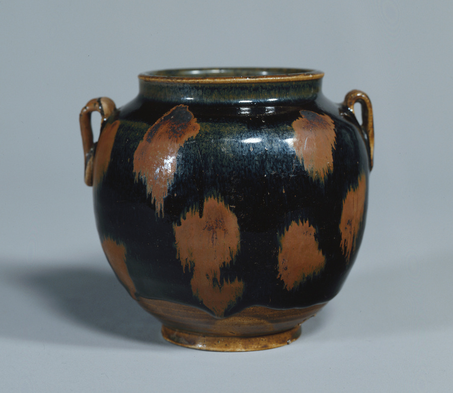 黒釉褐斑双耳壺